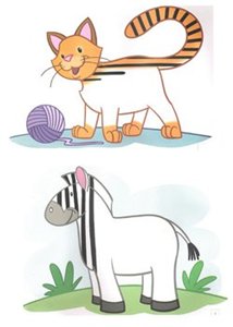 Предложите малышу дорисовать животным полосочки. Можно пробовать делать задания не только карандашом, но и кисточкой.